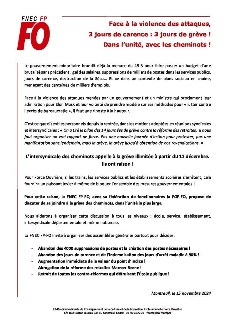 Partager la publication "Face à la violence des attaques: 3 jours de carence! 3 jours de grève!"