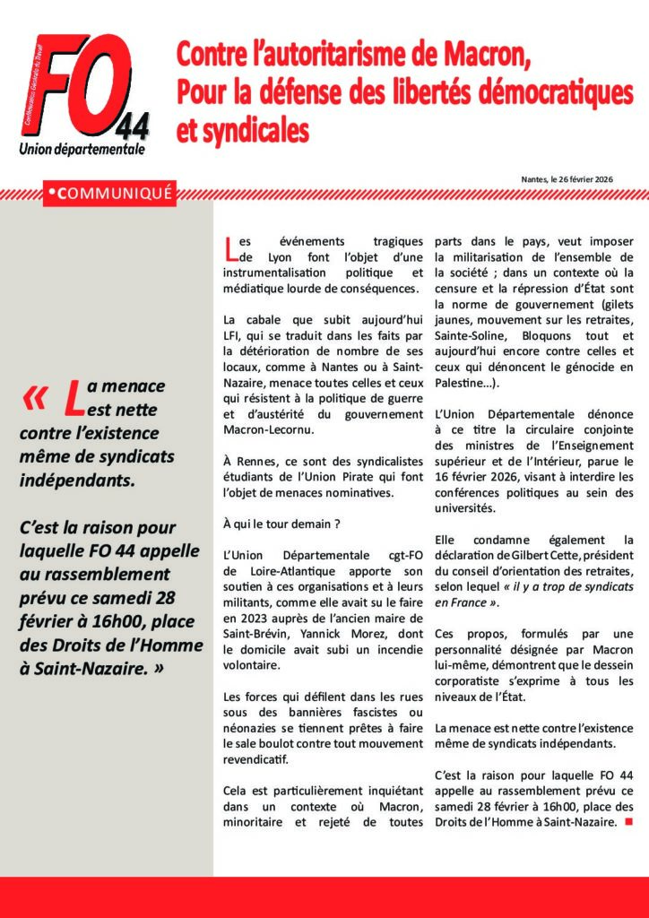 Partager la publication "Contre l’autoritarisme de Macron, Pour la défense des libertés démocratiques et syndicales"