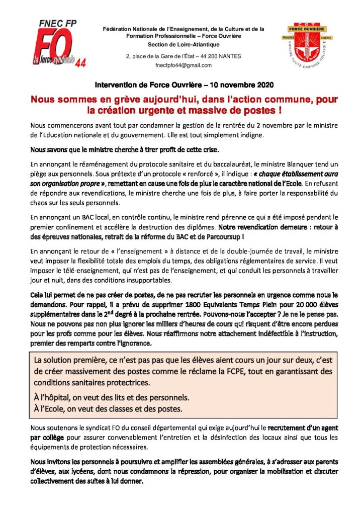 L’intervention du SNFOLCICI