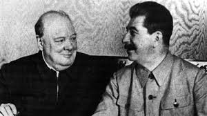 Churchill et Staline. Parmi leurs faits d’armes, l’écrasement de la résistance grecque en 1945. Les deux compères sont bien d’accord, la Grèce doit rester sous contrôle de l’ « Occident ». L’armée britannique y expérimente des armes chimiques.
