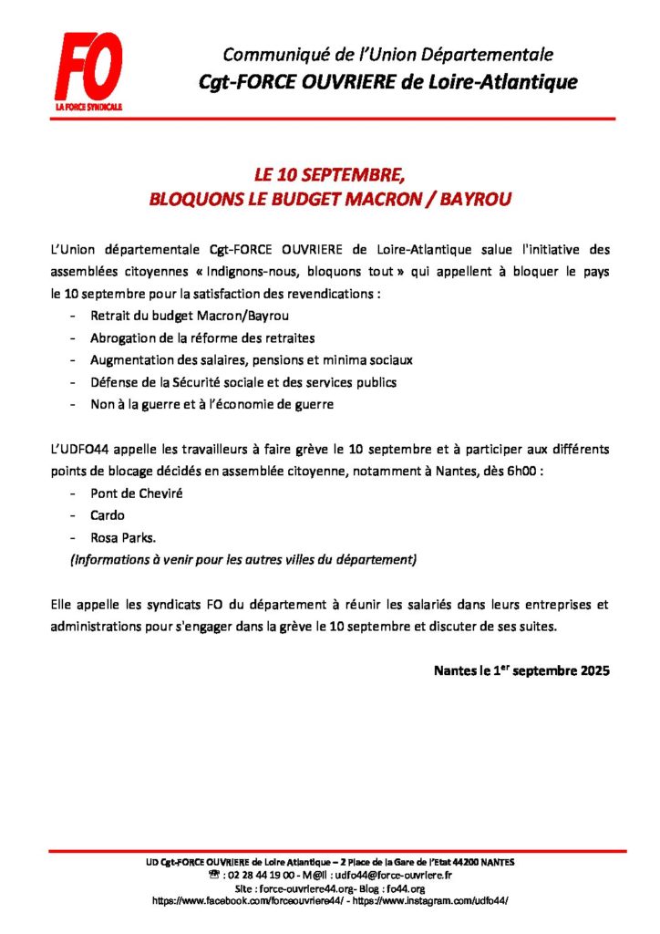 Partager la publication "LE 10 SEPTEMBRE, BLOQUONS LE BUDGET MACRON / BAYROU"
