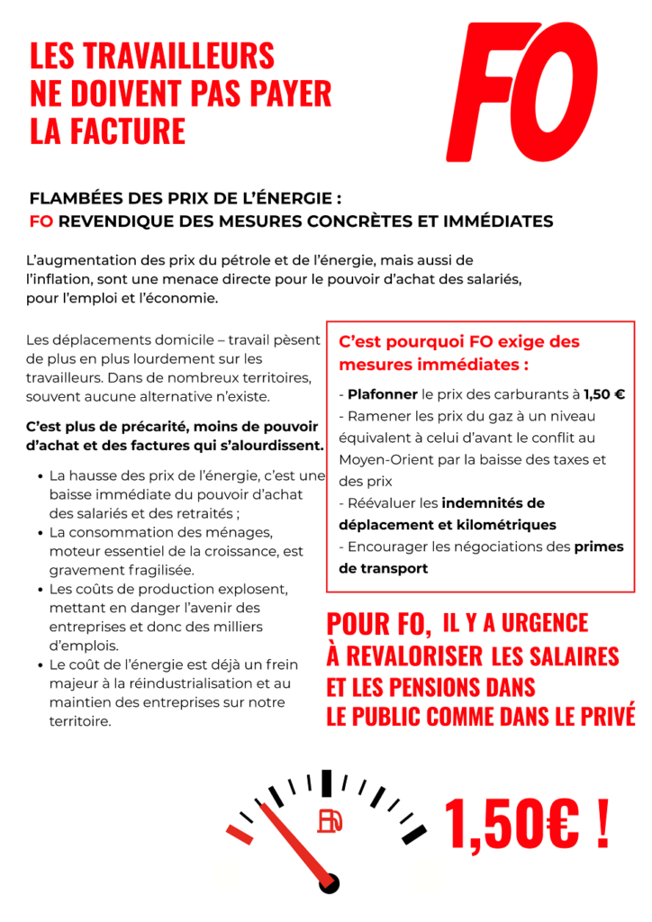 L’augmentation des prix du pétrole et de l’énergie, mais aussi de l’inflation, est une menace directe pour le pouvoir d’achat des salariés, pour l’emploi et l’économie.