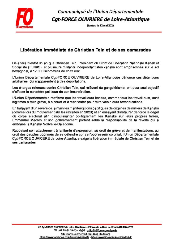 Partager la publication "Libération immédiate de Christian Tein et de ses camarades"