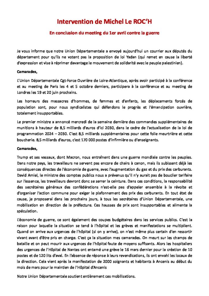 Ci-dessous l’intervention de Michel Le Roc’h