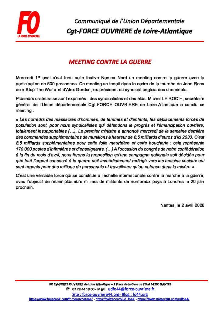 Partager la publication "« Meeting contre la guerre » du 1er avril à Nantes"