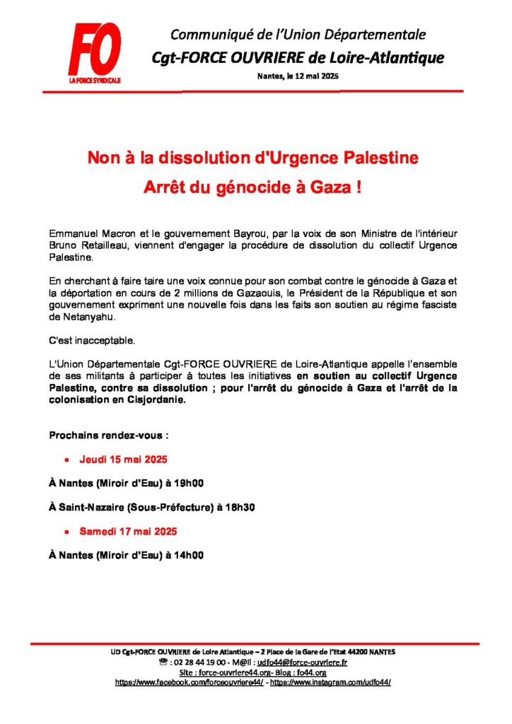 Partager la publication "Non à la dissolution d’Urgence Palestine Arrêt du génocide à Gaza !"
