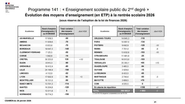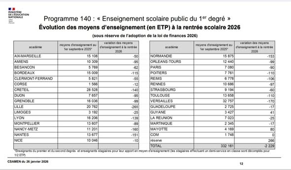 Partager la publication "Suppressions de postes d’enseignants annoncées dans l’académie de Nantes à la rentrée 2026"
